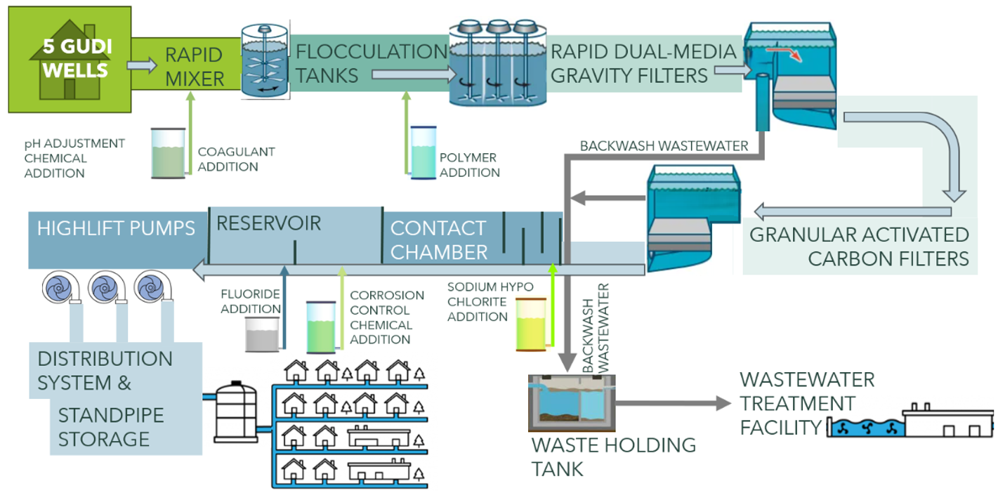 The Blind River Water Treatment Plant (WTP) sources its water from five groundwater wells that are under the direct influence of surface water (GUDI). There are eight GUDI wells in total, but only five are in service.