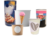 Paper laminate containers Spiral cans, cookie dough packages, ice cream containers/tubs, and hot and cold beverage cups