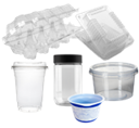 Plastic food containers Food trays, salad, yogurt, peanut butter, bakery and egg containers, plastic cups, plastic tubs and lids, black plastic containers.
