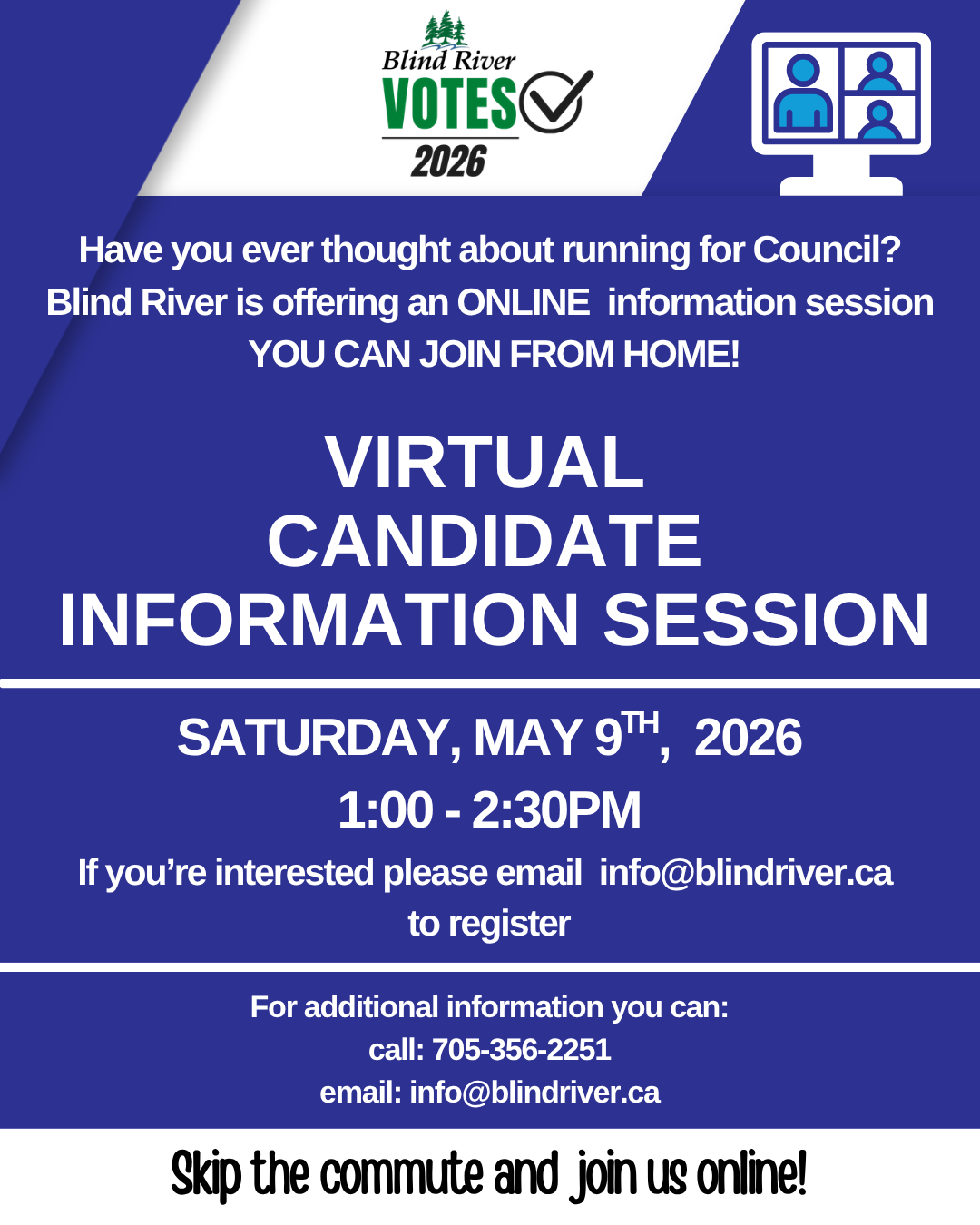 An appointment is required to submit your nomination, please call 705-356-2251 ext. 201 or email info@blindriver.ca to book your time.